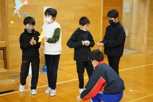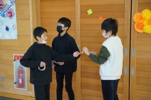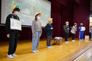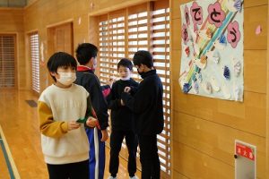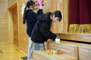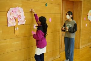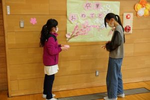5年生が、明日の「卒業を祝う集い」のリハーサルを行っていました。飾り付けの係の人たちは、全体のバランスを考えながら飾り付けを行っていました。進行や挨拶、出し物もずいぶん上手になってきました。明日は、素晴らしい集いになることでしょう。
