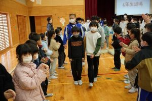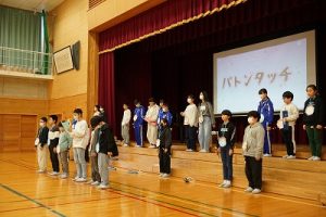 卒業を祝う集いの後半の様子です。「バトンタッチ」「6年生からの言葉」からの写真を軽視亜しています。