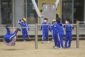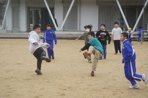 休み時間のグラウンドの様子です。誰が何をしているのか分からないくらい子供たちがたくさんいました。この元気を勉強にもきっと生かしていけることでしょう。