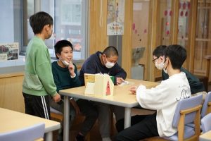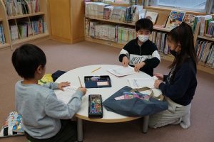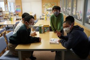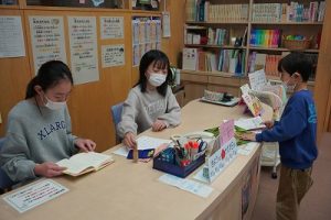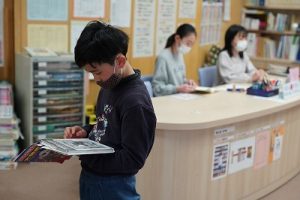 休み時間の図書室の様子です。晴耕雨読ですね。