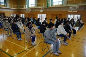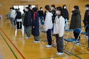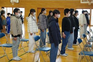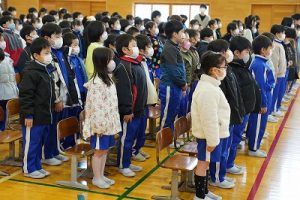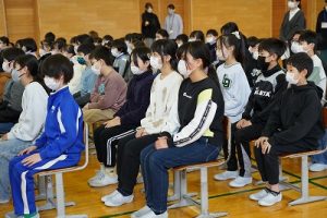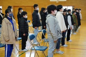 卒業証書授与式の全体練習がスタートしました。今日は、心構えや作法について学んだ後、呼びかけや歌の練習をしました。奇しくも今日は「作法の日」です。卒業式の練習は、礼儀作法を身に付けるという点でも、有効な場だと思います。