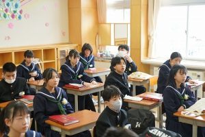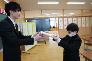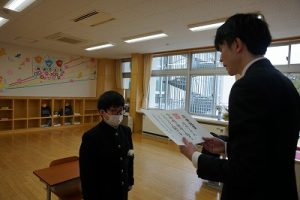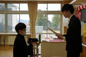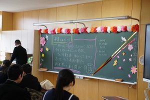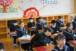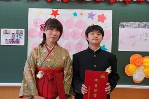 体育館での卒業証書授与式が終わった後、各学級で担任から卒業証書を受け取りました。今日まで、本当によく頑張りましたね。