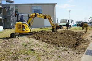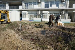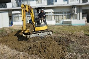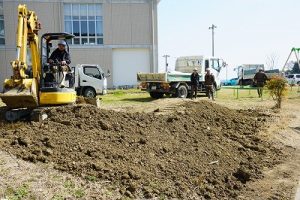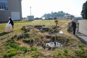 プレイグラウンドに平成25年9月に造られたビオトープ。長い年月が経過し、その機能は失われtれいました。復旧も難しいことから、池を埋めて築山にすることにしました。鎌仲建設さんに土をお願いしたところ、公園にある小高い丘のように整地までしてくださいました。雪が積もったら、そり遊びなども出来そうです。鎌仲建設さん、ありがとうございました。