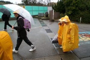 今朝は雨が降っていましたが、子どもたちは元気に登校してくれました。保護者の皆様は、最近、カッパを着て歩かれましたか? 私は、立山登山や宿泊学習以外に思い出せません。つまり、仕事以外では、カッパを着て歩いてないのです。子どもたちにとって、雨の中を歩いて登校してくるというのは、とても貴重な経験ですね。