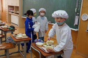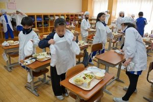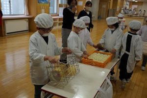 今年度の給食は本日が最終日です。子どもたちは、手際よく準備をして、美味しそうに食べていました。1年間、栄養バランスを考えた美味しい給食を作ってくれた給食センターの方を始め、生産者の方々や納入業者の方々、関係者の皆様に心より感謝申し上げます。これからもどうぞよろしくお願いします。