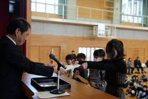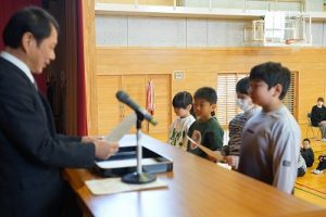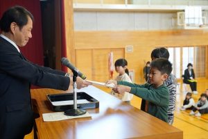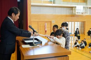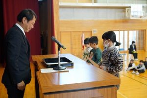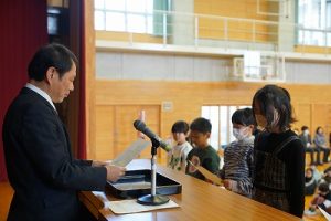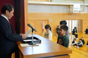 令和7年度修了式が行われ、各学年の代表者に修了証を渡しました。明日からは春休み、そして4月8日(水)が、令和8年度の始業式です。体を休めながらも、進級のための心と体の準備を進めてほしいと思います。始業式に元気に会えるのを楽しみにしています。