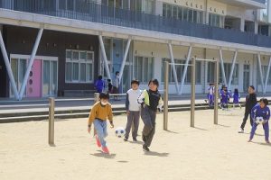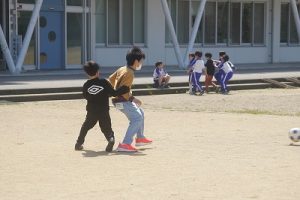 4月13日(月)昼休みのグラウンド 2026年4月13日 朝日丘っ子 とても暖かい日になりました。こんな日は、外にいるだけで気持ちがいいですね。昼休みのグラウンドでは、たくさんの子どもたちが遊んでいました。