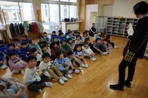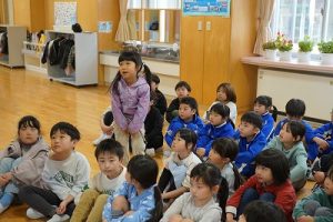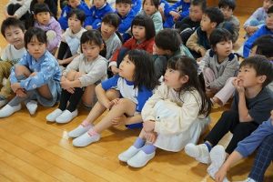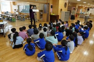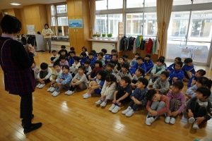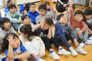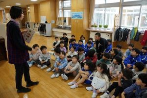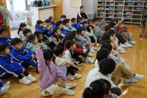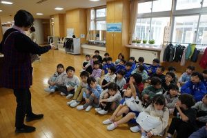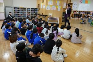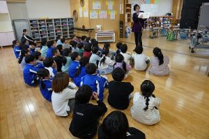 図書館司書の先生が1・2年生に読み聞かせを行いました。お話をよく聞いていて、発表もよくできています。とても行儀がいいですね。