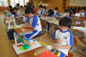 6月25日(火)わりピンワールド 2024年6月25日 朝日丘っ子 3年生の図画工作科では、「わりピンワールド」という教材を使って、ぐるぐる回る工作に取り組んでいます。ステージごとに、様々な工夫を凝らしています。いろいろな物語が聞こえてきそうです。