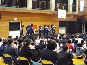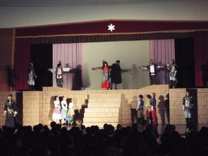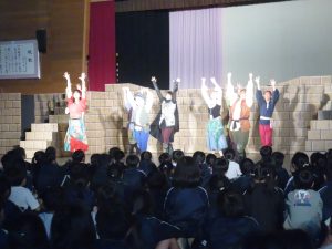 学校巡回公演では「ノートルダム物語」を本校体育館にて観覧しました。立場や生まれによる対立の中で、登場人物たちの思いや願いが交わる「勇気」と「自信」の物語でした。