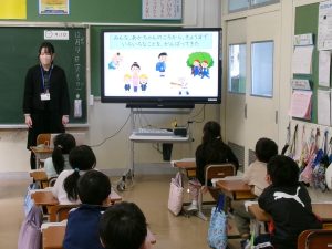子どもたちからは「姿勢など食事のマナーを守って給食を食べようと思いました」などの感想がありました。授業で教えていただいたことを、明日からの給食で早速実践していこうと思います。