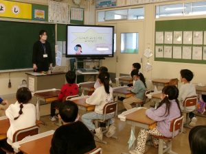 外国語の活動で、朝日丘小学校の6年生とオンライン交流を行いました。