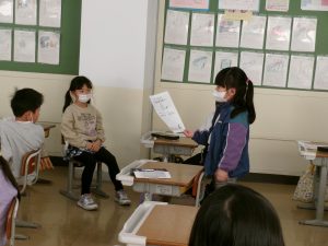 生活科「町たんけん」、「あの人に会いたいな」の学習で商店街でがんばっている人にインタビューをしに行きました。当日の朝まで、子供たちは質問や挨拶等たくさん練習をしていました。