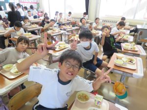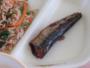 答えは②のほっとするです。「あっかり」には、安心するという意味があります。今日のみそ汁は、みなさんがあっかりするような優しい味に仕上がっています。また、煮干しには成長期に必要な栄養、ビタミン、カルシウムや鉄分が多く含まれています。