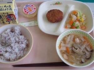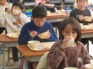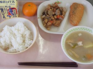 埼玉県は、新しくなった1万円札にデザインされている渋沢栄一の出身地です。今日は渋沢栄一がデザインされているのりをごはんと一緒にいただきました。また、渋沢栄一は、さつまいもが好きだったことから、さつまいもの「おさつ」とお金の「おさつ」をかけて、今日はおさつ汁です。