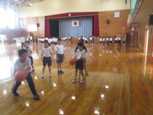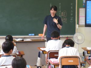 低学年もALTの先生と楽しく外国語を学んでいます。