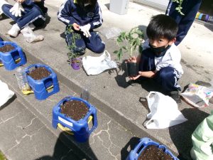 「大きくなあれ」と願いをこめて、丁寧に植えました。