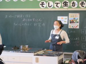 今日は、6年1組で料理教室があり、オーガニック野菜を使った「ありものすいとん」に挑戦しました。キトキトひみの圓佛さん、梶さんありがとうございました。
