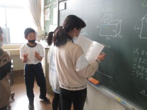 午後からの班活動では、班の友達と声をかけあい、助け合って楽しく活動していました。