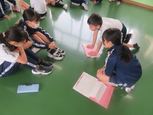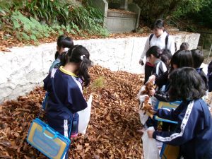 学校に帰ってから、落ち葉やどんぐりが入った袋を顔に近づけて、「秋の匂いがするー」と、嬉しそうに教えてくれました。秋見付けを通して、秋と仲良くなることができました。