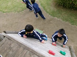 最後は、ぶり公園で遊びました。順番を守って並び、仲良く遊びました。