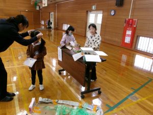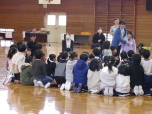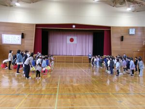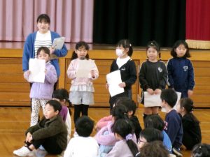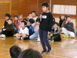 今日は、来年度比美乃江小学校に入学する年長さんを招待して、「年長さん 比美乃江小学校へようこそ!集会」を行いました。