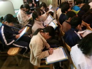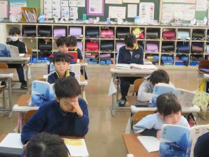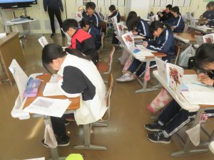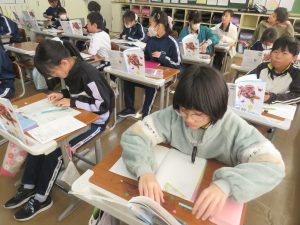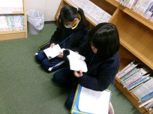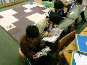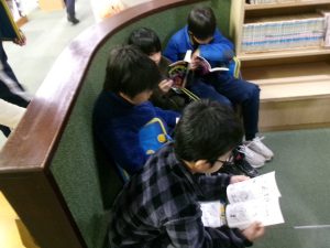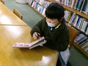 3種類の中から、好きなカードを選び、図書カードを作成しました。学校の図書室よりもはるかに多い本の中から興味のある本を楽しそうに選び、静かに読んでいました。