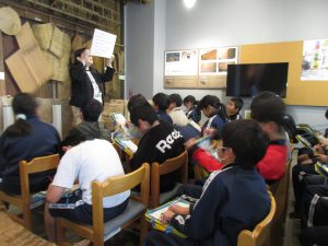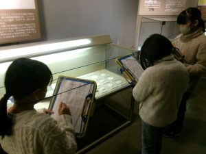 自由見学後、「展示してあるお金は一枚いくらですか」「博物館の中で一番古い展示物は何ですか」など、疑問に思ったことも進んで質問していました。
