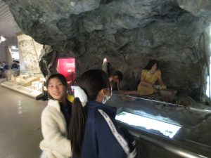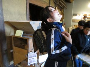 まず、博物館の中で、昔のものや昔の家、漁業で使われていた網の説明を聞きました。