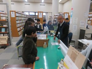 最後に、書庫を見学させてもらいました。ものすごい数の本や昔から保管されている新聞に驚いていました。