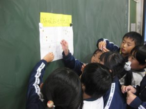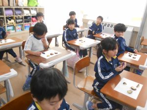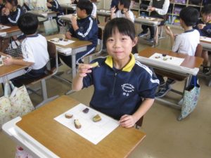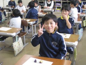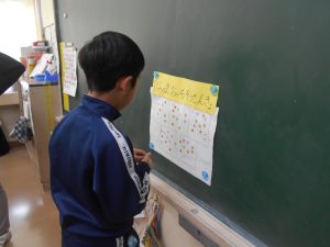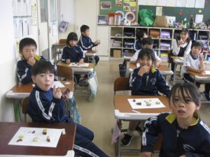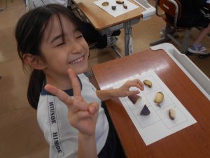 食べ終わってから、一人3枚配られたシールをおいしかったと思う番号に貼って、比美乃江2年生の一番人気のおいもを決めました。