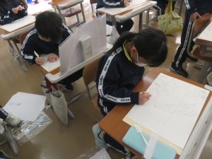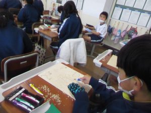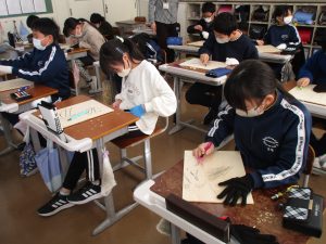 図工の学習では、版画で作品づくりに取り組んでいます。