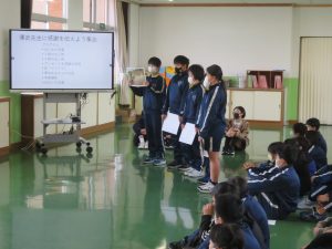 12月18日(木)に米づくりや親子活動のもちつきで、お世話になった澤武先生に感謝を伝える集会を開催しました。