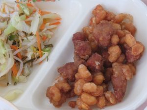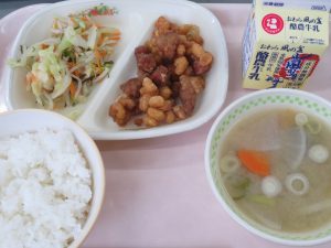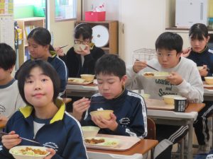 今日は、1年のうちで太陽が出ている時間が一番短い「冬至」です。日本では、昔から、今日を境に、太陽の力がよみがえり、運が回復すると考えられていました。地方によっては、運が回復することを願って、「ん=運(うん)」が2つ重なる食材を7つ食べて運をあげる「運盛り」と呼ばれる縁起担ぎが行われます。給食でも、冬至のだんご汁で運盛りをしてみました。「ん」が2つ重なる食材が3つあります。みなさん、見つけることができますか?