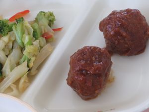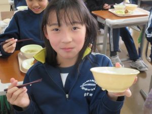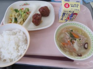 ごはん ぎゅうにゅう みそだれにくだんご ブロッコリーサラダ たんたんはるさめスープ