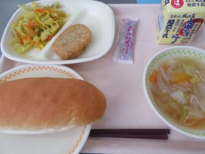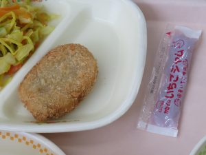 今日の献立のコッペパンやコロッケ、ジャムは、当時の子供たちに必要だった栄養がたくさん入っています。昔の人の思いを感じながら給食をいただきましょう。