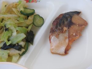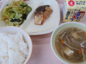 ごはん ぎゅうにゅう さばのみそに キャベツとわかめのあまずあえ とりごぼうじる