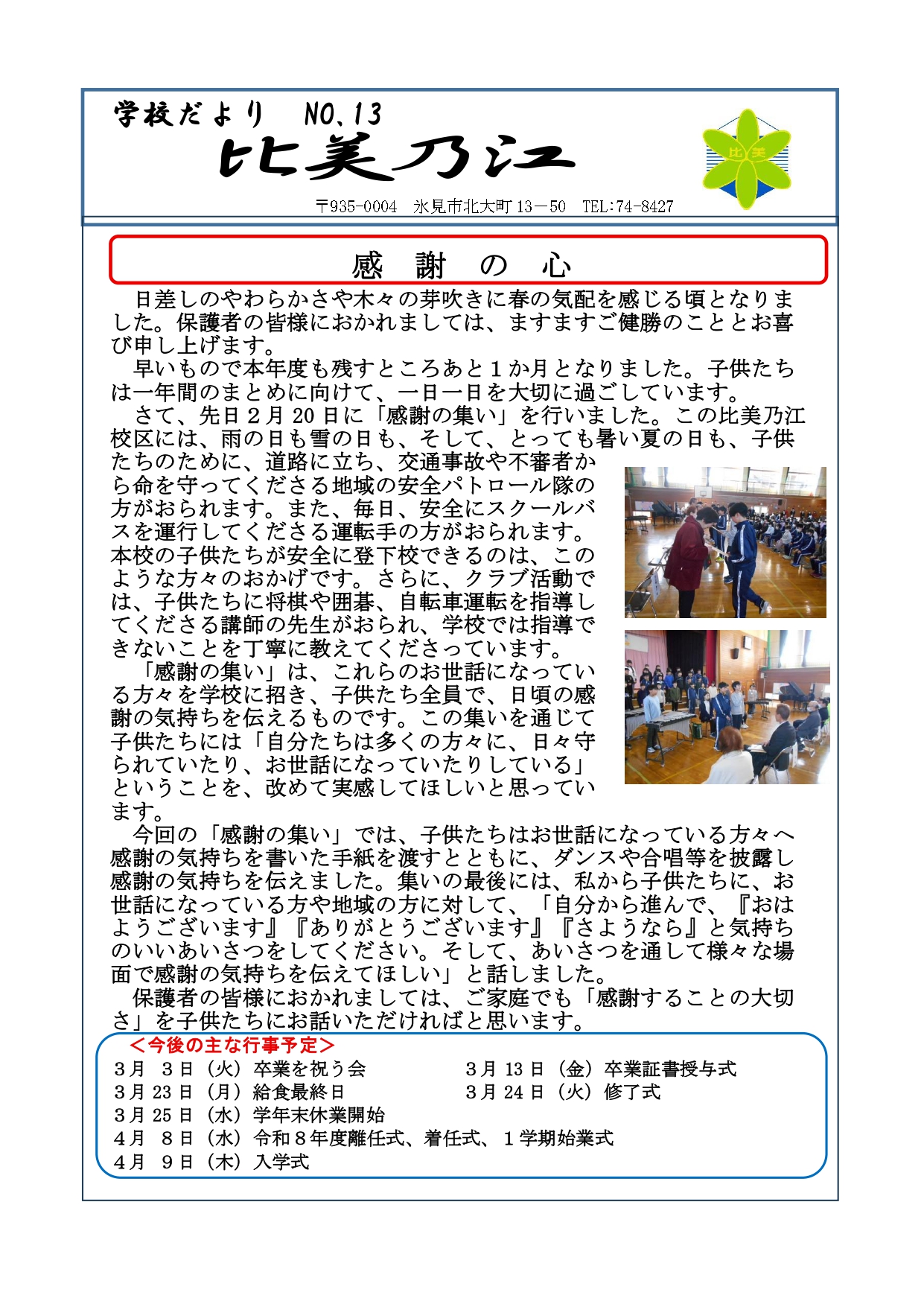 2月25日(水)ひみのえ参観です。