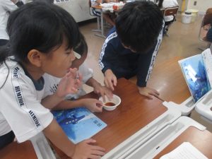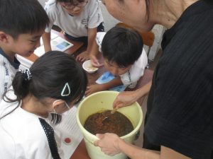 味噌や醤油の味見をしたり、きなこ作りを見せてもらったり、大豆がさまざまな食品に変わる様子を五感で学習することができました。