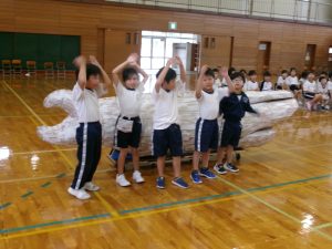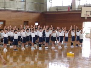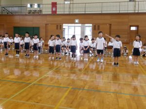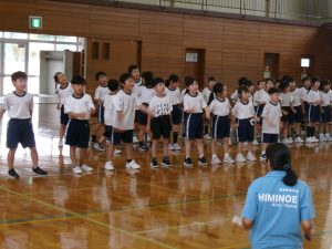 初めての体育館練習で緊張している子もいましたが、みんな一生懸命に頑張っていました。