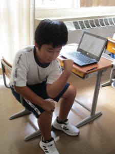 ロダンの「考える人」をタブレットでよく見て、ポーズをまねていました。