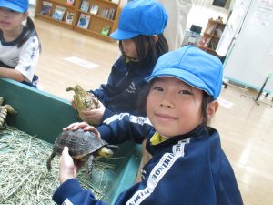 生き物とたくさん触れ合い、いろいろな生き物と仲良しになりました。