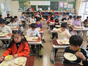 かぼちゃは、氷見市触坂の「ふれさかパンプキン愛」さんからいただいたものです。カロテン、ビタミンC、ビタミンE、食物繊維などが多く含まれ、病気を予防したり、体を元気にする働きがあります。