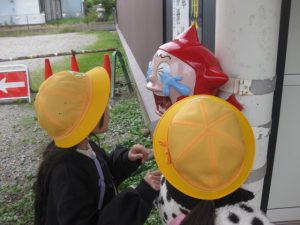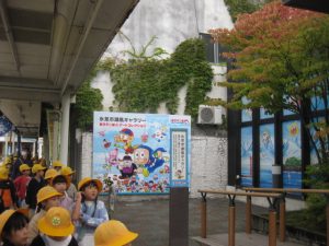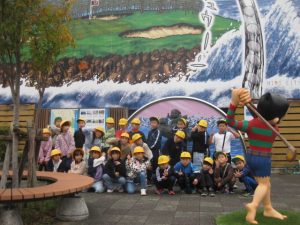 また、商店街には、はっとりくんのモニュメントや絵がたくさんあって、子供たちは潮風商店街のすてきも発見していました。