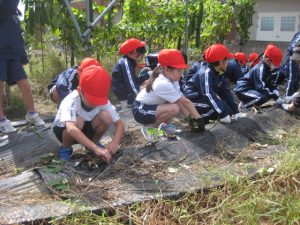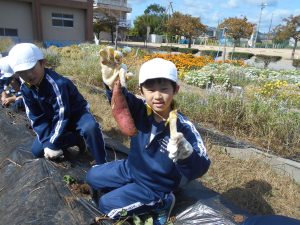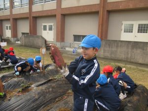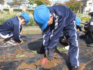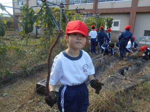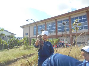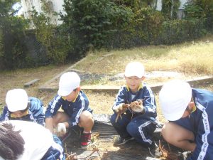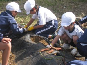 子供たちは、朝からさつまいものつるを協力して片付ける姿が見られました。手際よく片付けていたので、朝の間に片付けが終わり、4時間目のさつまいもほりに向けて準備はばっちりです。