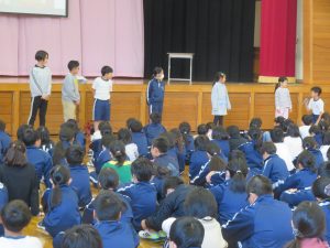 図書委員会からは、「ふしぎなタネやさん」のお話を劇やクイズを織り交ぜた楽しい読み聞かせがありました。