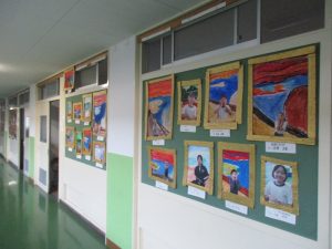題名もクスッと笑ってしまう面白いものもあり、4年生廊下は美術館になりました。