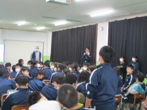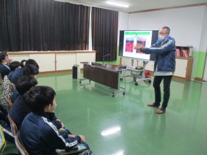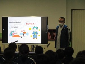 学校薬剤師の長澤先生を講師にお招きして、薬物乱用防止教室が行われました。