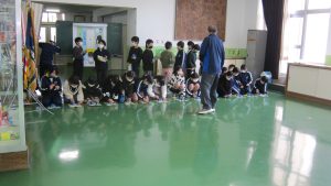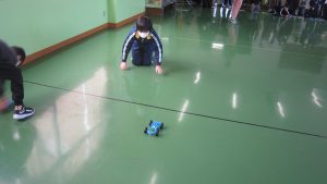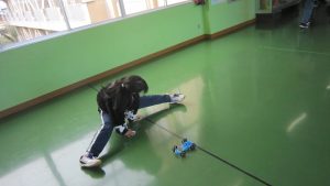 理科の時間に、ゴムで動かす車を使って、熱き戦いが繰り広げられました!