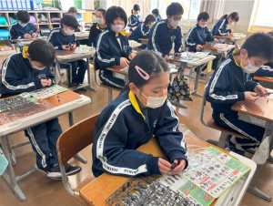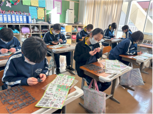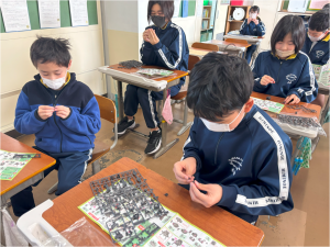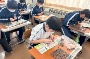 12月12日(金)に社会科「日本の工業生産」の学習で、環境に配慮したエコバージョンのプラモデルづくりをしました。パーツの素材にリサイクルされたプラスチックを使用しているため、持続可能な社会の実現に向けた取組となっています。
